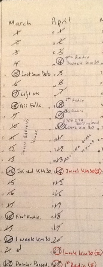 I am feeling depressed. I could be anywhere in the world. I could be happy now, instead I am stuck in my 8ft by 8ft cabin, reading or sleeping or daydreaming. I have spent only one and a half weeks away from home and am seriously doubting my spirit to cope with this job. Perhaps I ought to do a countdown of days in the back of this diary – it is as good as done!