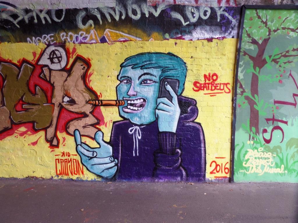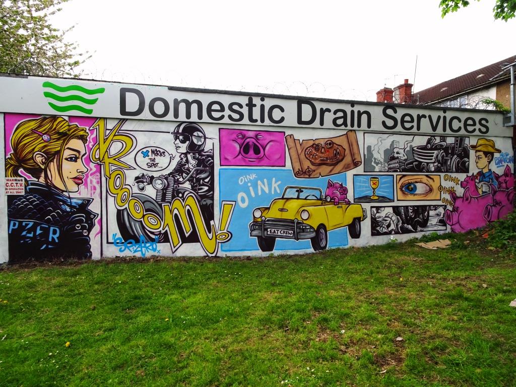 Each year in August there is an event held in Dean Lane skate park called DLH, or Dean Lane Hardcore. It is a fairly crazy affair with skaters, wild music and a lot of booze. Before the event, streetartists come down and do a bit of decorating on the ramps and walls, which ends up looking pretty good on the videos.