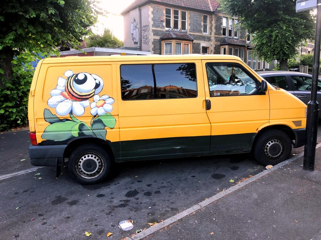 Wow, fascinating street art. I like the bright yellow (happy) van too. My favorite is the third one down.