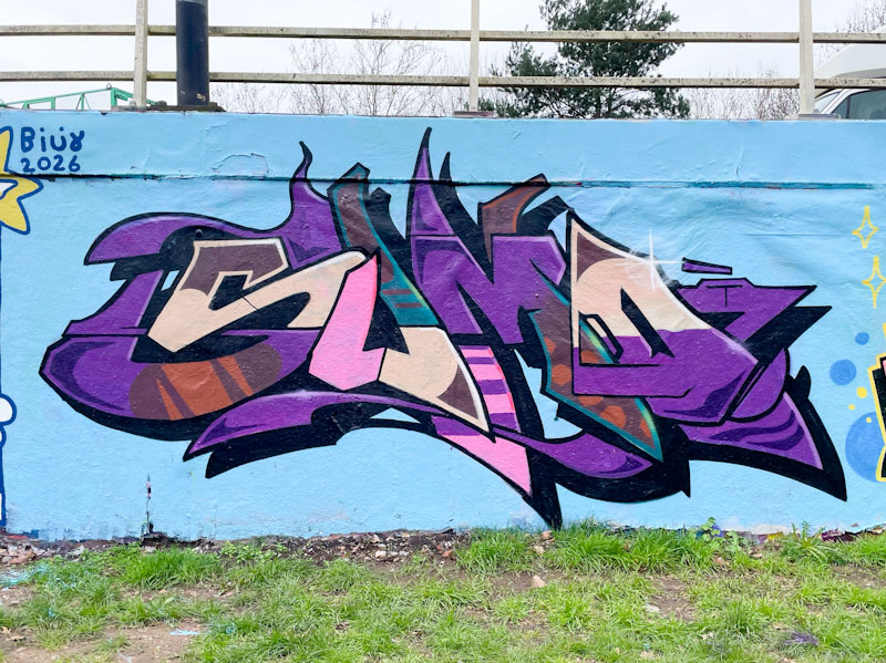Spelling SUMO (unsurprisingly), the letters are woven together in an interesting way in both the design and the fill patterning. A very shadowy drop shadow lifts the piece nicely from the blue buffed background. I haven’t seen any more pieces from Sumo since this one, but live in hope and anticipation for more.