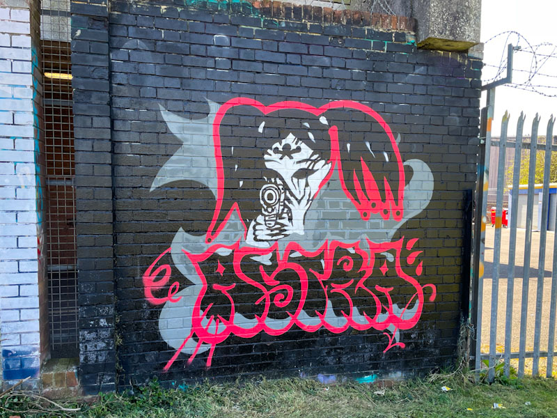 I am very much enjoying seeing her work popping up around the place, but sadly have missed the boat on two pieces, one under the M32 and the other in Peel Street Green, where I arrived a day too late, which was gutting. This modest black and white piece is painted on one of the skate ramps and makes a statement albeit quietly.